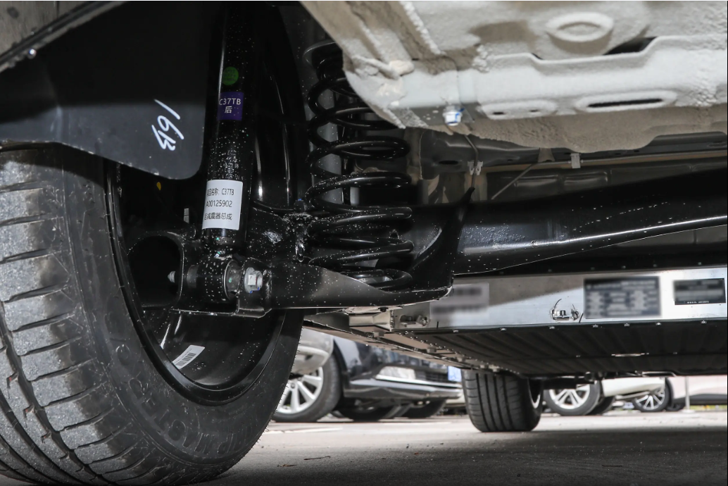 底盘和操控性方面,采用了前麦弗逊式独立悬挂+后纵臂扭转梁式非独立悬挂的结构组合,这样的悬架组合优点在于能够让车内空间最大化,而相反的一方面,扭力梁确实会牺牲一些操控性,但这也不是极狐T1所追求的。根据我们此前的试驾来看,极狐T1在行驶过程中,能够感受到悬架调校偏向于舒适性,对颠簸和细碎振动都能较好的过滤。不过在快速经过较大坑洼时,后排还是能感受到一些多余跳动。