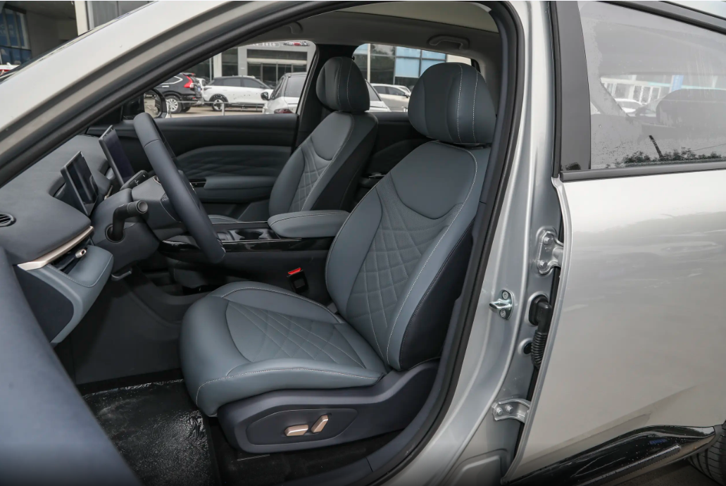 进入车内,同样是简约的设计风格,和外观整体调性保持一致。8.8英寸液晶仪表搭配15.6英寸的悬浮式中控屏,成为内饰最为吸睛的部分,所支持的功能较为丰富,显示效果也不错。门板看上去柔软质感不错,但触摸后才会发现大部分实际是硬塑料材质做出的造型,只有手肘经常触及的位置采用的是皮质包裹,当然对于这个级别的车型来说也是无可厚非。