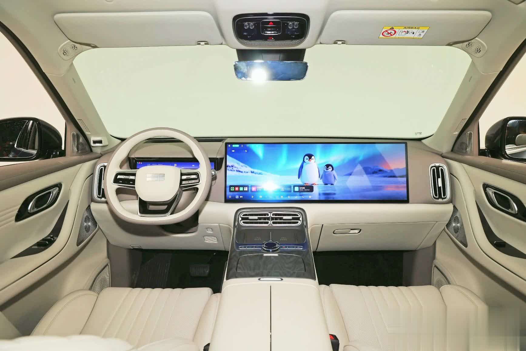 来到内饰,整体的科技感真是非常强,贯穿式的中控车机,搭配Flyme Auto最新的一个车机系统,用起来是非常的顺手,功能也非常的丰富,支持Hicar、CarLink手机互联,座椅方面通风加热按摩都给你安排上了,方向盘加热也没有缺席,并且二排座椅也配了加热按摩功能,舒适性配置真的十分厚道,二排两张独立的座椅,乘坐的空间也是非常的宽敞,中间还给你配了一块独立的控制面板,轻松控制座椅的加热按摩等功能,同时电冰箱也没有缺席,其次头顶上方也配了一块吸顶屏,保证后排舒适体验。